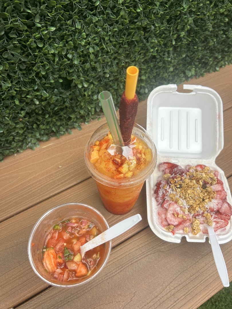 Mangonada, Fresas con Crema, Fruit Cups, Tostilocos, Cheese Cake, Funnel Cake, Choco Flan, Salchipulpos, Diablito, Manzana Loca Loca Apple, Tres Leches Cake, Chamoy Candy, Nachos, Agua Fresca, Cรณctel de Camarones