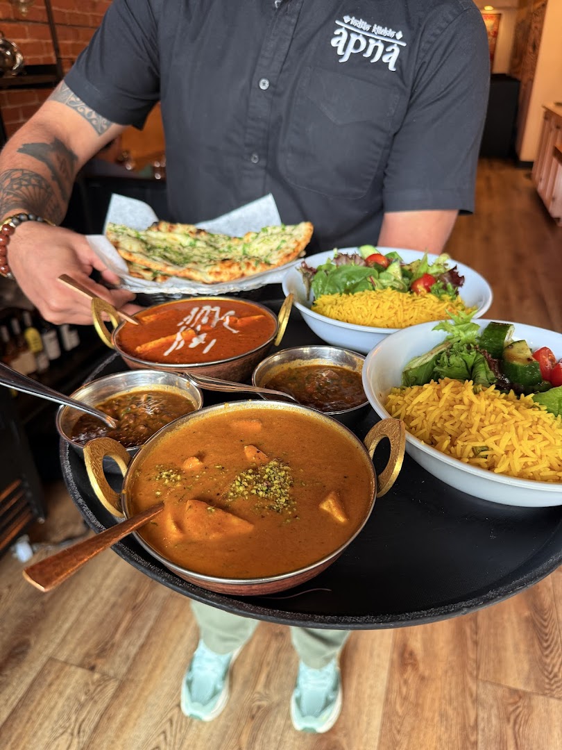 Apna Indian Kitchen offers authentic Indian classics like butter chicken and fragrant curries in a cozy, brick-lined space.