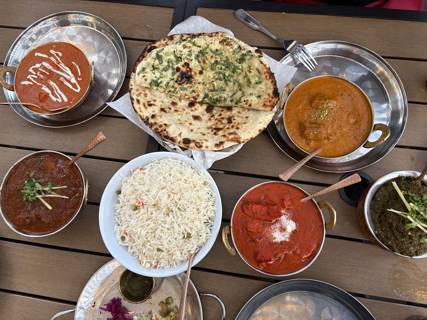 Butter Chicken, Chicken Tikka Masala, Malai Kofta, Garlic Naan, Cheese Naan, Curry Fries, Vindaloo, Samosa, Vegan Dishes, Chai Tea
