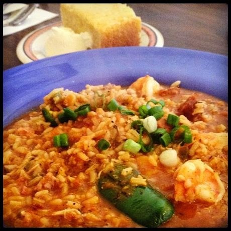 Jambalaya, Beignets, Eggs Benedict, Huevos Rancheros, Cornbread, Shrimp and Andouille Grits, Blackened Catfish Benedict, Fried Chicken, French Toast, Chilaquiles, Biscuits and Gravy, Mimosas, Coffee