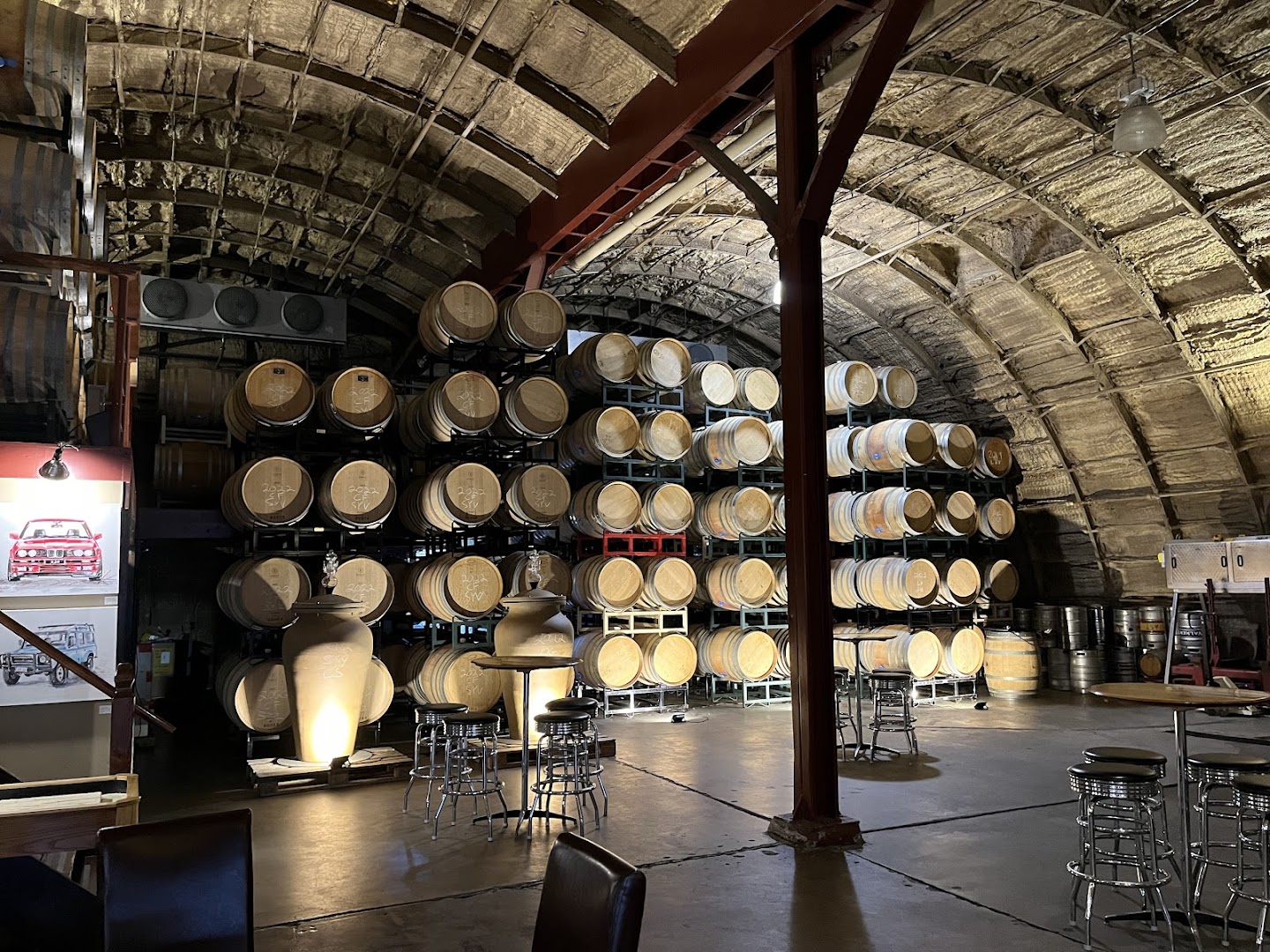 Guests at Carr Winery experience a vibrant tasting room set in a former airplane hangar, with shaded patios and fire pits for both indoor and outdoor enjoyment. Known for exceptional Cab Francs and Pinot noirs, live music runs Wednesday evenings and the first Friday of each month, enriching the relaxed yet lively ambiance.