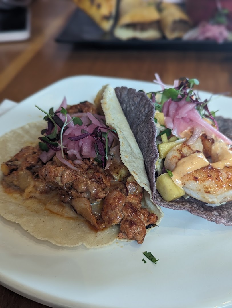 Tacos (Birria, Octopus, Carne Asada, Chicken Mole), Handmade Tortillas, Quesadillas, Sopes, Shrimp Empanadas, Guacamole, Horchata, Margaritas, Beer, Cocktails, Wine
