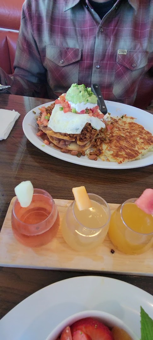 Chicken-Fried Steak, Chocolate Chip Pancakes, Mini Muffins, Omelettes, Huevos Rancheros, Corned Beef Hash, Bloody Mary, Mimosa Flight, Belgian Waffles, Home Fries