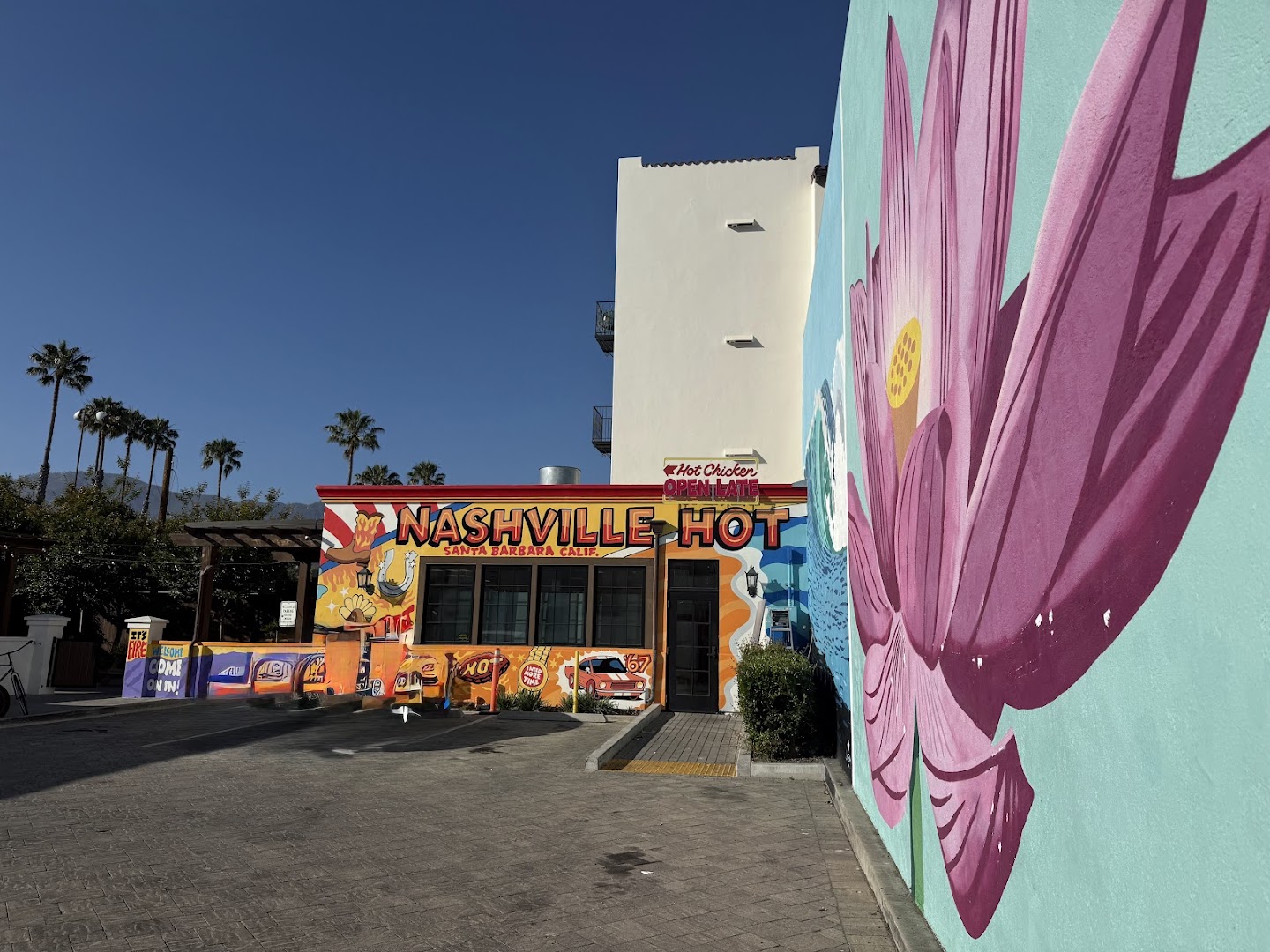 Flavorful, spicy fried chicken with crispy tenders and addictive sides, served in a vibrant Santa Barbara courtyard with friendly service.
