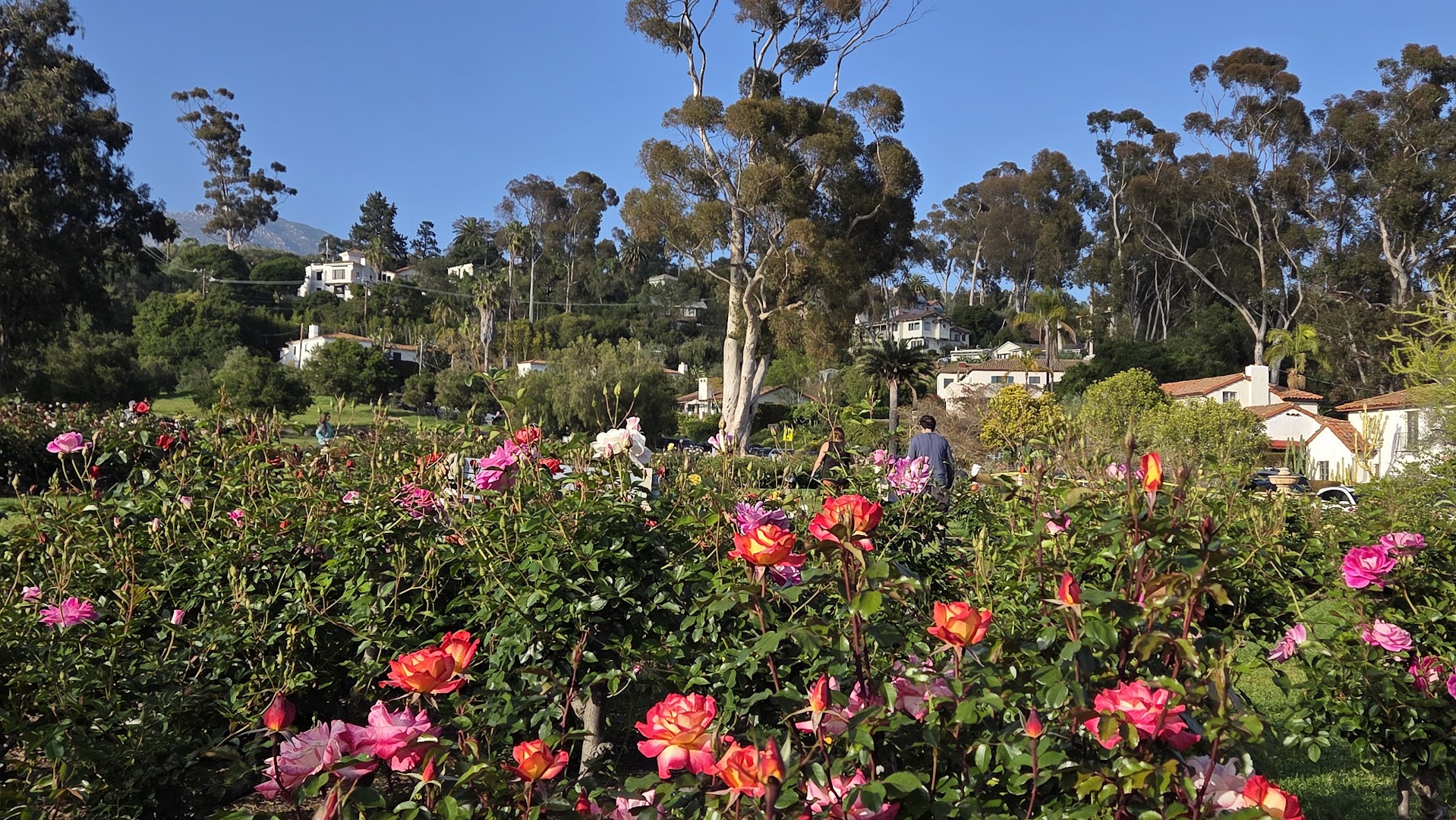 Mission Rose Garden showcases hundreds of colorful rose varieties framed by views of the Old Mission Santa Barbara and distant mountains. Visitors can enjoy peaceful strolls, open lawns for picnics, and a fragrant setting that flourishes best in spring and early summer.