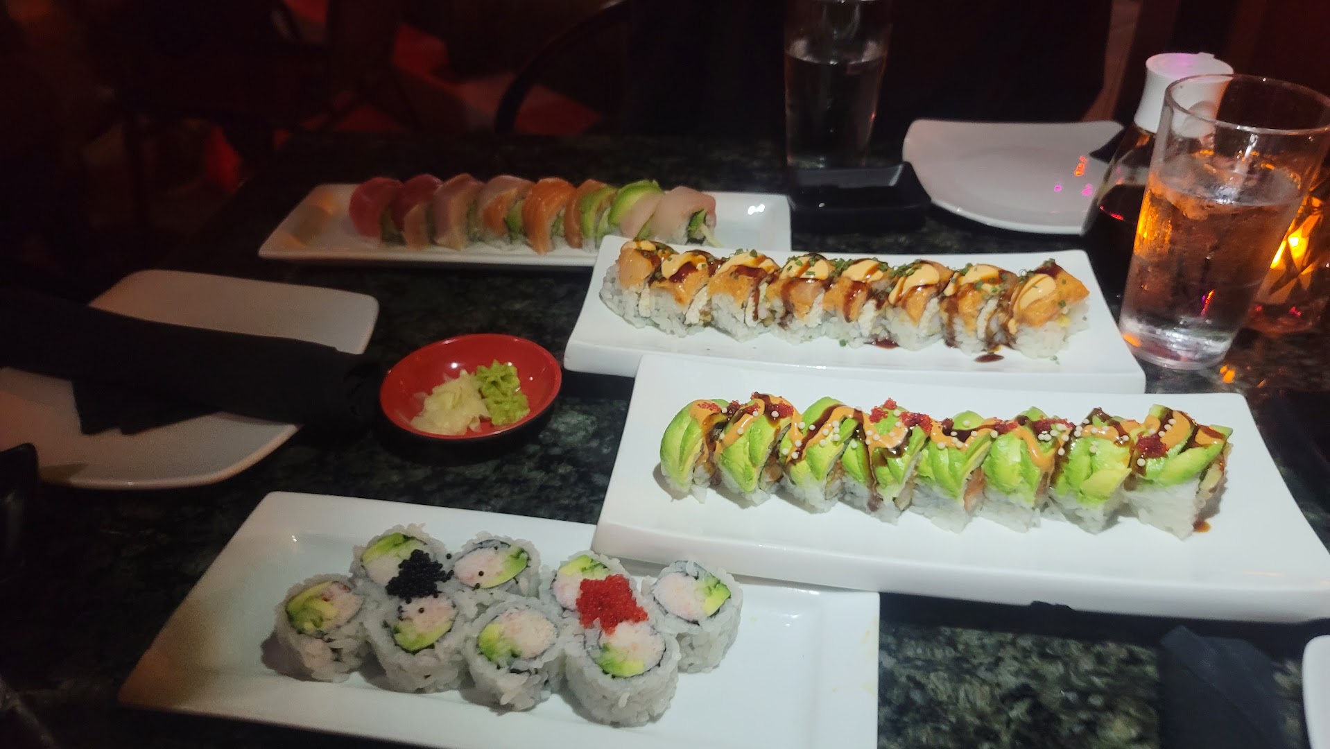 Fresh Sushi Rolls, Sashimi, Wagyu Roll, Korean Fried Cauliflower, Cucumber Salad, Mushroom Noodles, Small Plates, Creative Cocktails, Wine List, Coffee, Beer