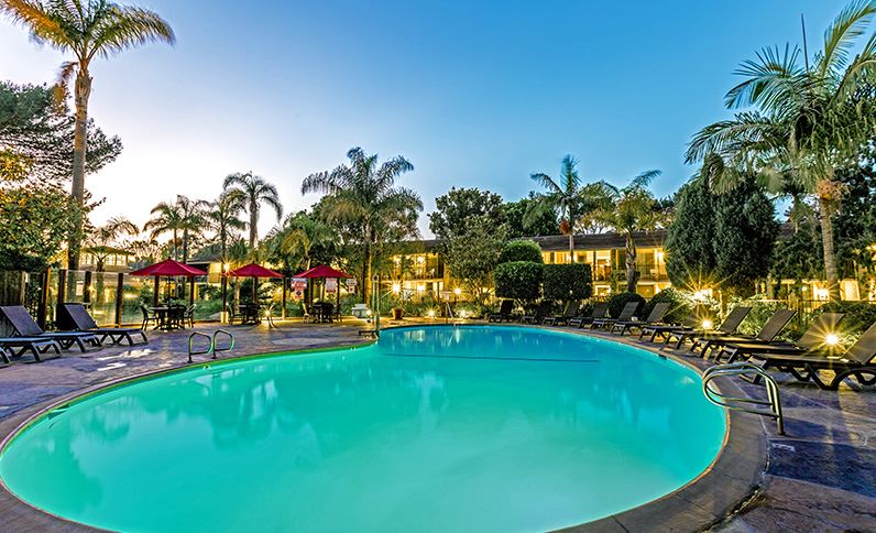Ramada by Wyndham Santa Barbara offers spacious rooms with modern amenities, many featuring balconies overlooking lush gardens and a serene lagoon.