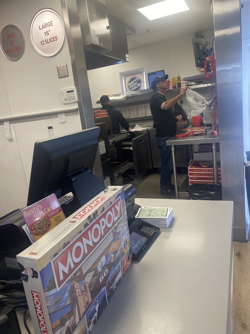 Rusty's Pizza Parlor serves classic American and specialty pizzas alongside hot wings and sandwiches in a casual, family-friendly setting.
