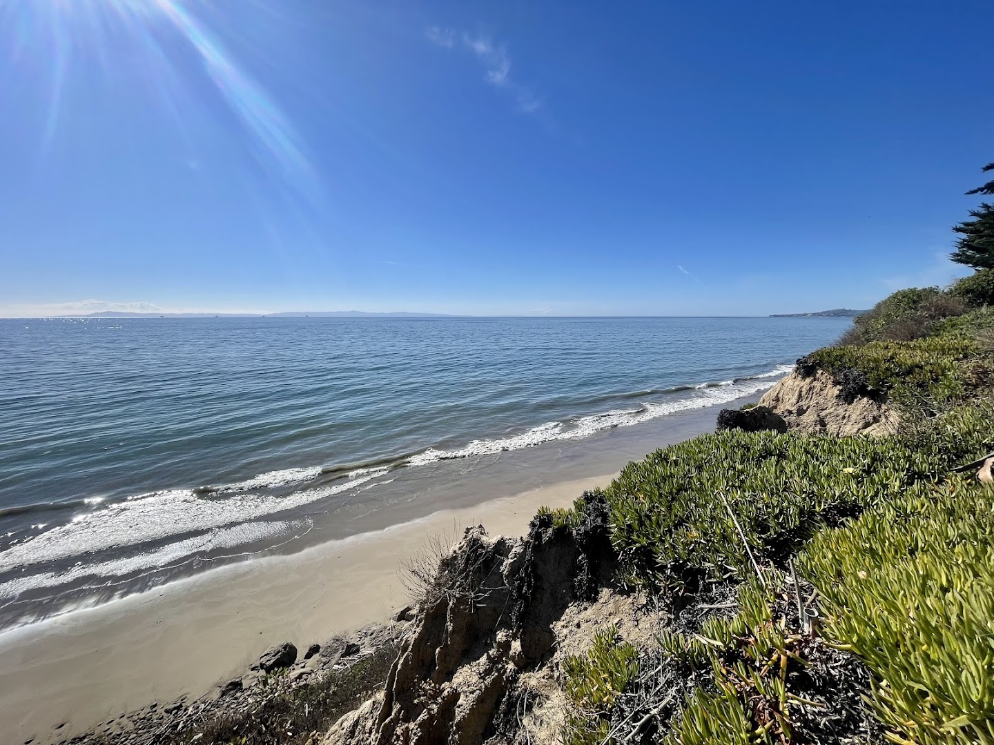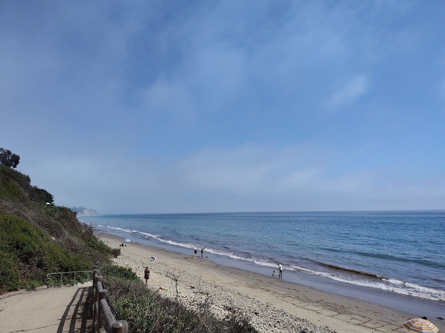 Summerland Beach provides an accessible coastal experience with sandy and rocky beaches and a picturesque overlook park. Visitors find a paved path to the beach, playground, picnic tables, barbecue grills, volleyball court, restrooms, and a dog wash station, making it perfect for families and pet owners alike.