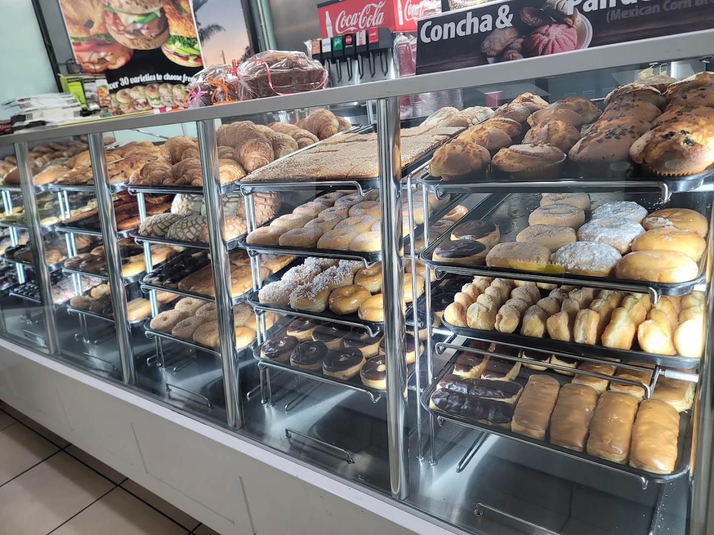 Glazed Donuts, Chocolate Donuts, Donut Sandwiches, Bagels, Muffins, Coffee, Licuado, Raspado