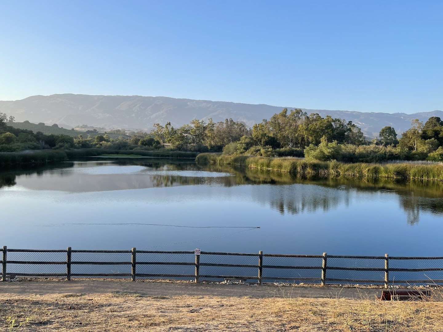 A tranquil lake in Goleta known for scenic walking trails, abundant wildlife, and peaceful natural surroundings.